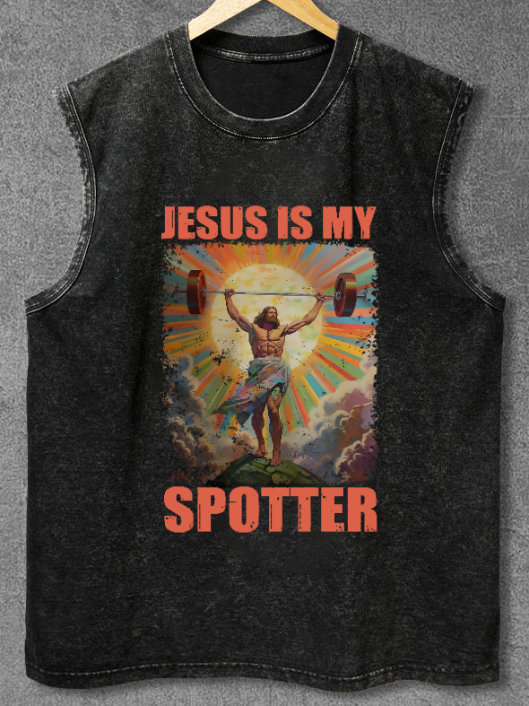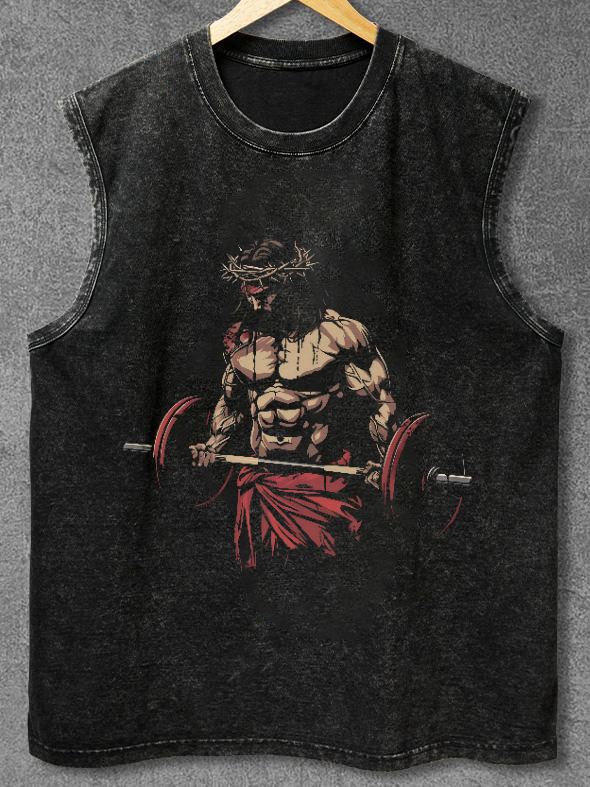 Jesus the Ultimate Deadlifter Washed Sleeveless Tank