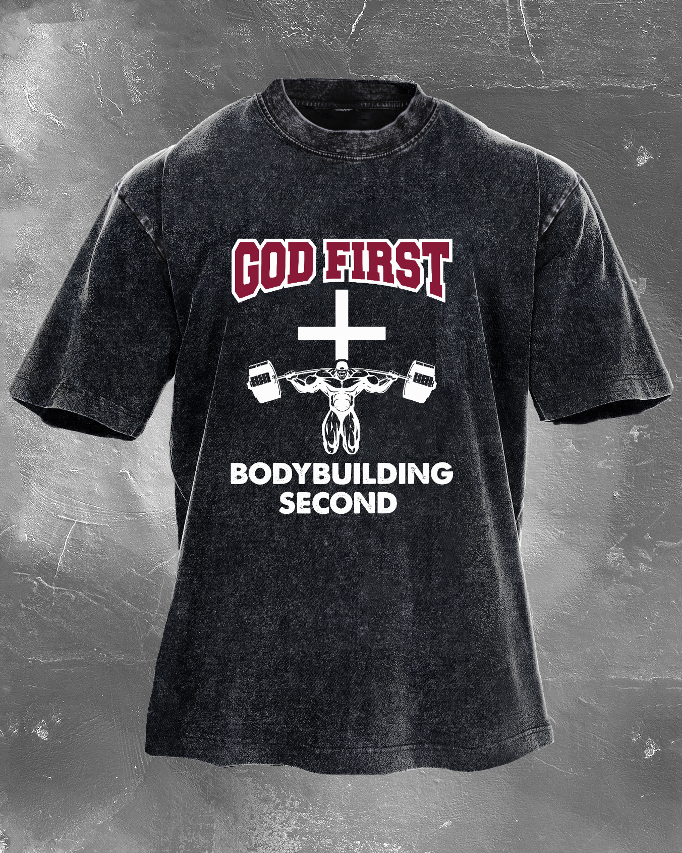 COD FIRST BODYBUILDING SECOND Men's washed T-shirt