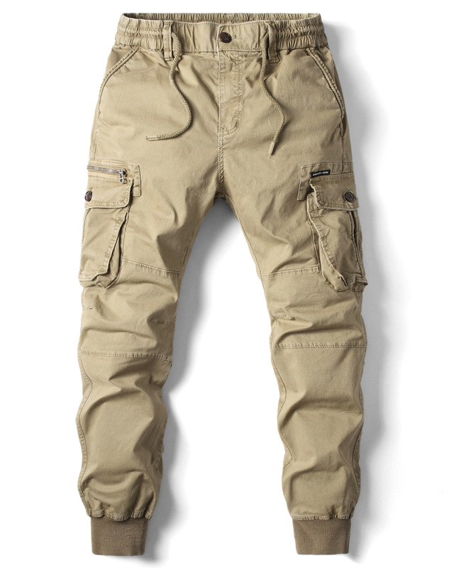 American Solid Color Multi-pocket Work Wear Tapered Trousers