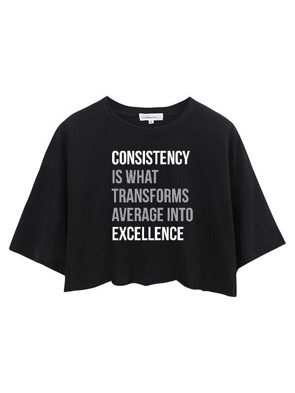 Consistency Is What Ransforms Average into Exsellence Relaxed Fit Crop Top