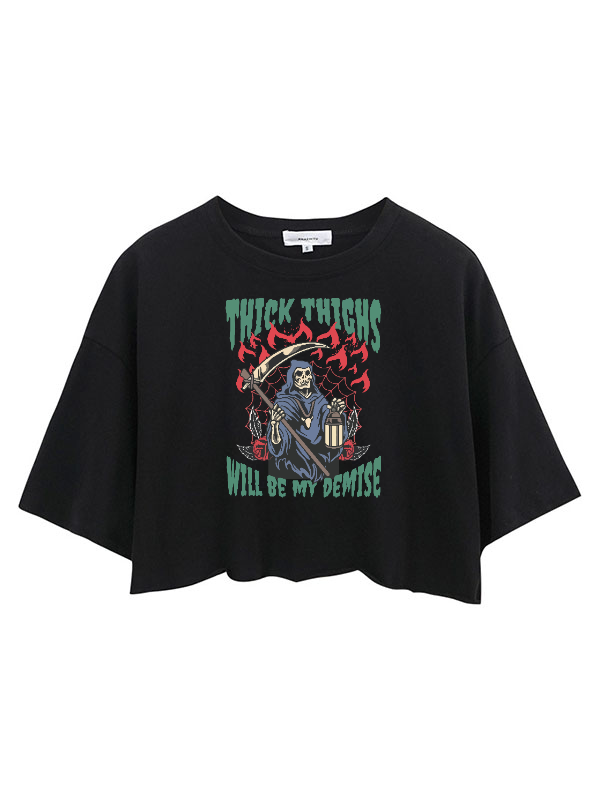 Thick Thighs Will Be My Demise Relaxed Fit Crop Top