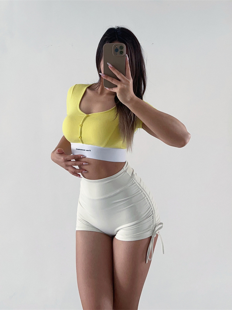 High Waist Elastic Drawstring Tight Fitness Cycling Shorts
