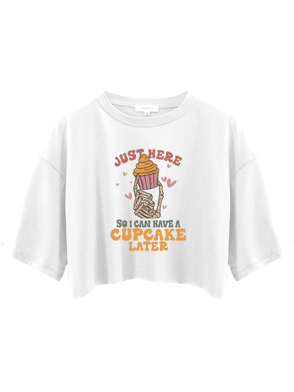 Just Here so I Can Have a Cupcake Later Relaxed Fit Crop Top
