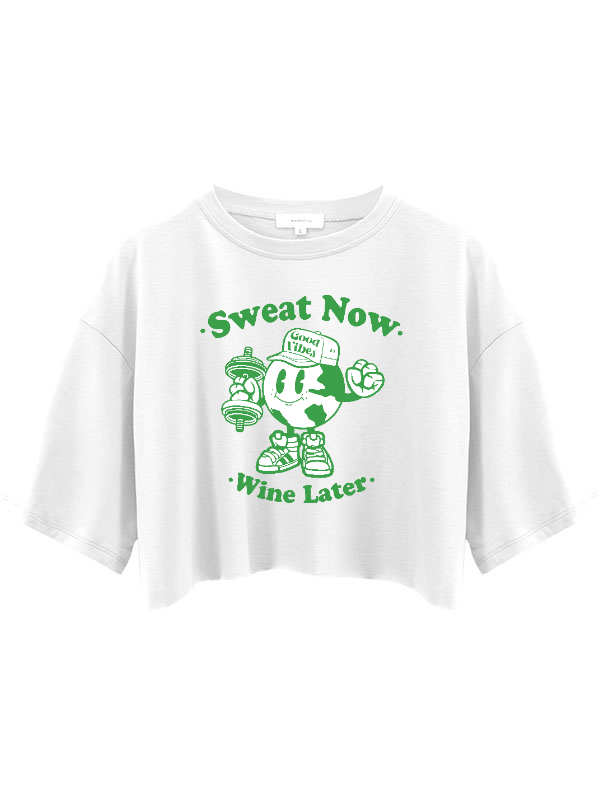 Sweat Now Wine Later Relaxed Fit Crop Top